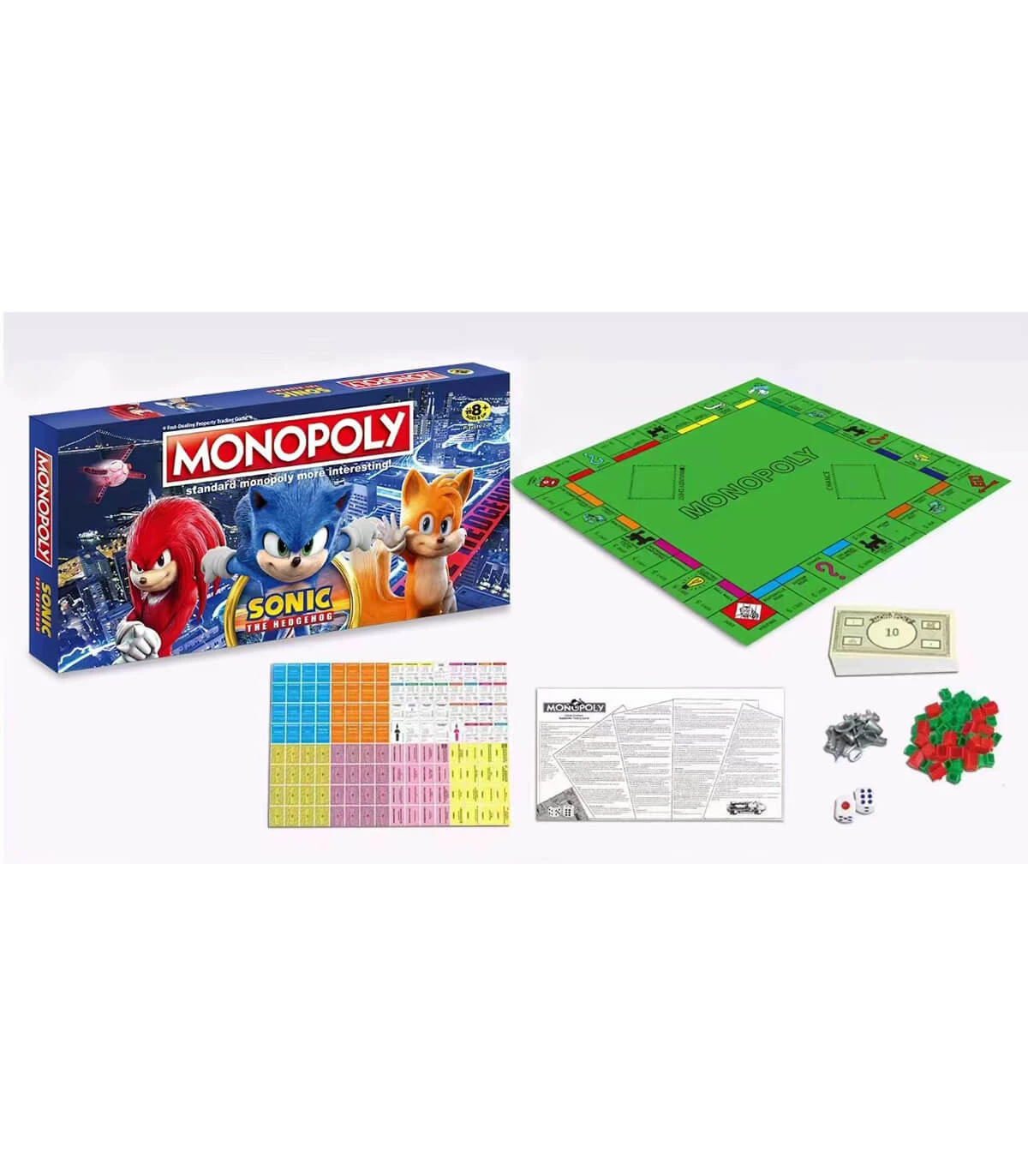 Monopoly Sonic 8+ este o variantă tematică a jocului clasic Monopoly, destinată copiilor de 8 ani și mai mari. Jucătorii călătoresc prin locații iconice din universul Sonic, cum ar fi Green Hill Zone, și folosesc piese inspirate de personaje precum Sonic, Tails și Knuckles. Jocul include reguli speciale și carduri putere, adăugând distracție și imprevizibilitate. Ideal pentru 2-6 jucători, este perfect pentru băieți și fete, dezvoltând abilități strategice și de gestionare a banilor.
