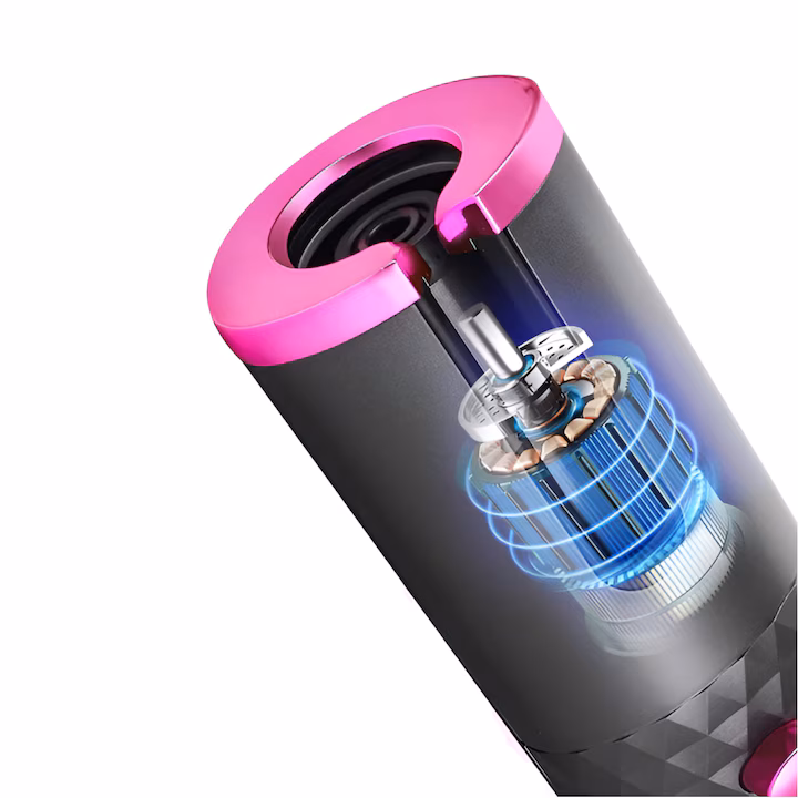 Ondulator de păr wireless cu înveliș ceramic, 6 trepte de temperatură (150°C – 200°C), display LED și încărcare USB. Compact și ușor de utilizat, oferă bucle perfecte oriunde, fără cabluri. Baterie de 5000 mAh cu autonomie de până la 40 minute și funcție Power Bank. Ideal pentru toate tipurile de păr.