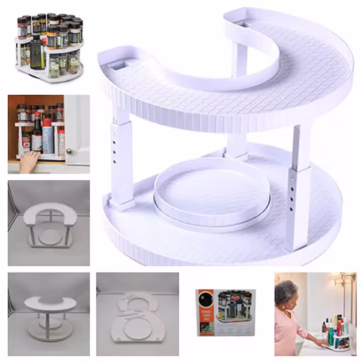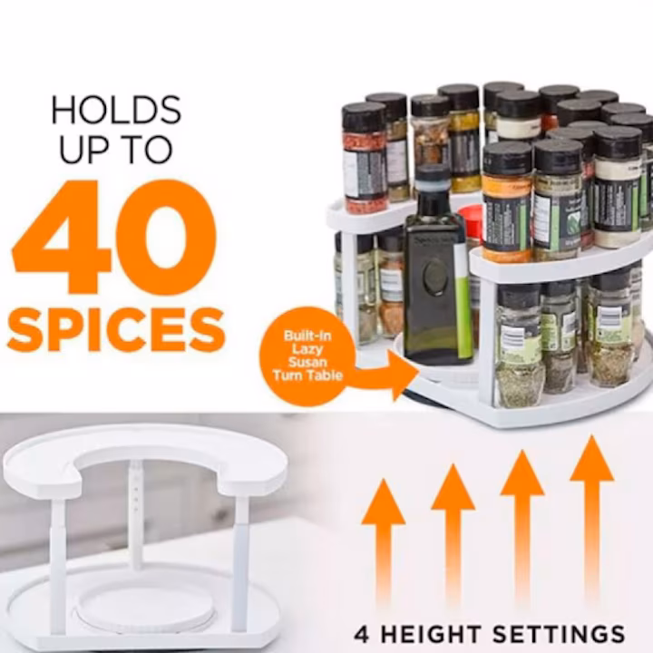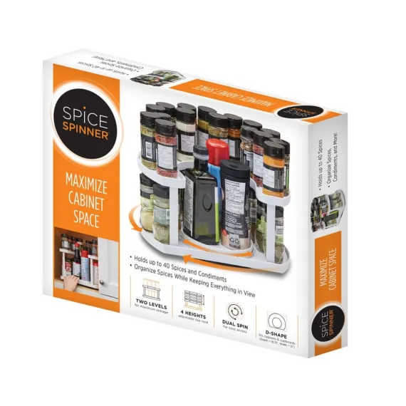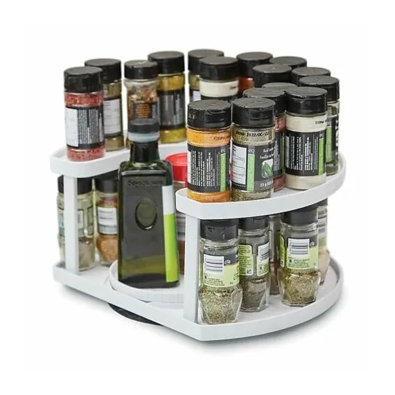 Organizator pentru condimente: Două platouri rotative pentru un acces mai ușor la condimentele dorite. Permite vizibilitatea tuturor condimentelor, iar platoul din mijloc poate susține obiecte mai înalte.